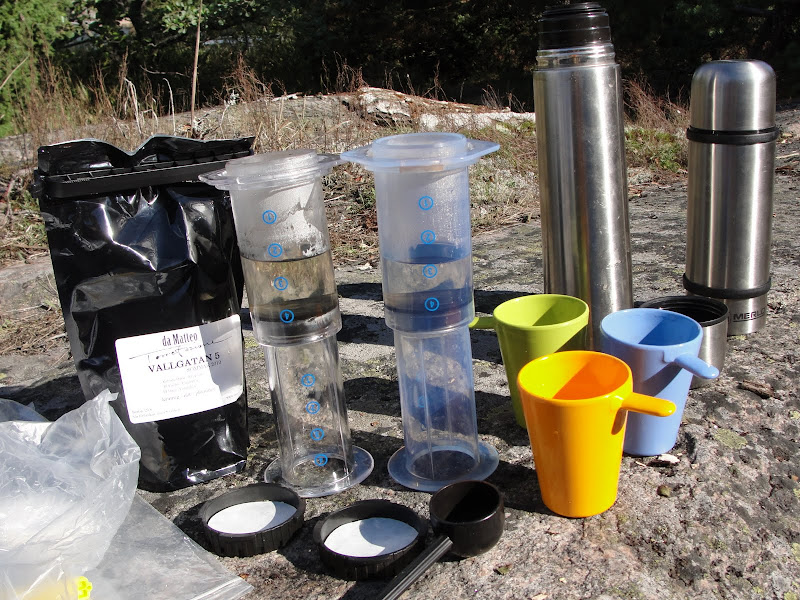 Det lutar åt att det bli en AeroPress, på deras hemsida nämnder de tom att den passar på Kajakturen. Lite större (tror jag) och dyrare men går även att använda hemma. Frågan är vad man ska brygga i bara. Brygger du direkt i koppen? Får åka förbi J&N och be dem dema.